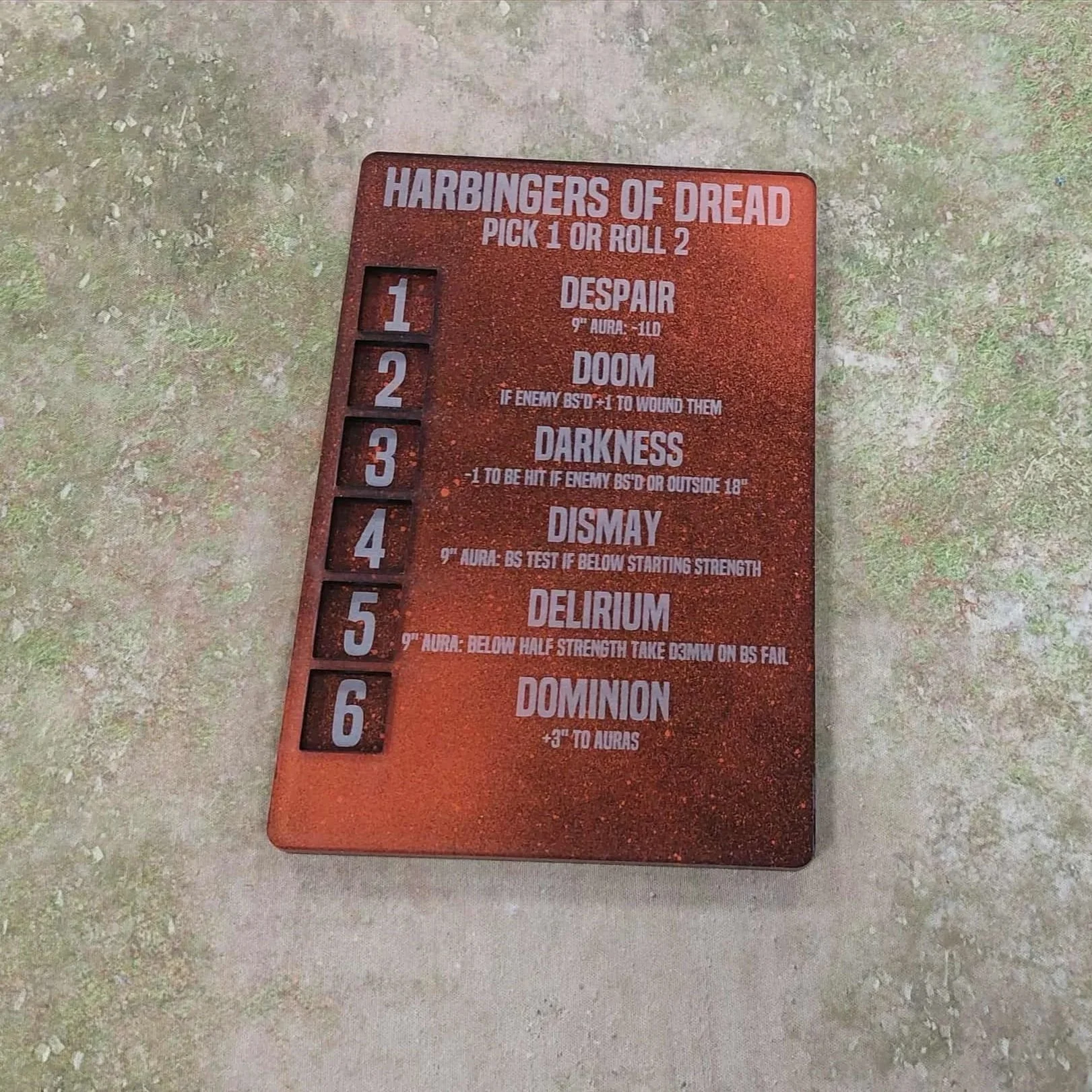 Categories: All 40k The Onyx Collection Starter Packs Mission Tokens 40k Tools 40k Terrain Stat Check Disgustingly Resilient Podcast Space Marines White Scars Ultramarines Space Wolves Salamanders Raven Guard Iron Hands Imperial Fists Grey Knights Deathwatch Dark Angels Blood Angels Black Templars Armies of the Imperium Imperial Knights Astra Militarum Agents of the Imperium Adeptus Mechanicus Adeptus Custodes Adepta Sororitas Armies of Chaos Emperor's Children World Eaters Thousand Sons Death Guard Chaos Space Marines Chaos Knights Chaos Daemons Xenos Armies Aeldari Drukhari Tyranids T'au Empire Orks Necrons Leagues of Votann Genestealer Cults Other Games Kill Team MESBG TCG accessories Magic the Gathering Flesh & Blood Dice Objective Markers Laser Lines Mini Basing Products Armies of Chaos All 40k The Onyx Collection Starter Packs Mission Tokens 40k Tools 40k Terrain Stat Check Disgustingly Resilient Podcast Space Marines Armies of the Imperium Armies of Chaos Emperor's Children World Eaters Thousand Sons Death Guard Chaos Space Marines Chaos Knights Chaos Daemons Xenos Armies Other Games TCG accessories Dice Objective Markers Laser Lines Mini Basing Products Coterie of the Conceited Pact Tracker | Emperor's Children £8.99 Add To Cart Added! Experimental Augmentations | Creations of Bile Tracker £9.99 Add To Cart Added! Chaos Knights Starter Pack £17.99 Add To Cart Added! Chaos Knights Empowered Token | Pack of 10 £9.99 Add To Cart Added! Harbingers of Dread Tracker | 40k Tools £9.99 Add To Cart Added! Death Guard Ultimate Pack | 40k Tools £19.99 Add To Cart Added! Blessings of Khorne Tablet | 40K Tools £8.99 Add To Cart Added! Contagion Gauges | 40k Tools £5.99 Add To Cart Added! Contagion Tokens | Pack of 6 | 40k Tokens £4.99 Add To Cart Added! Contagion Range Tracker | 40k Tool £6.99 Add To Cart Added! Contagion Plaques | 40k Tools £5.99 Add To Cart Added!